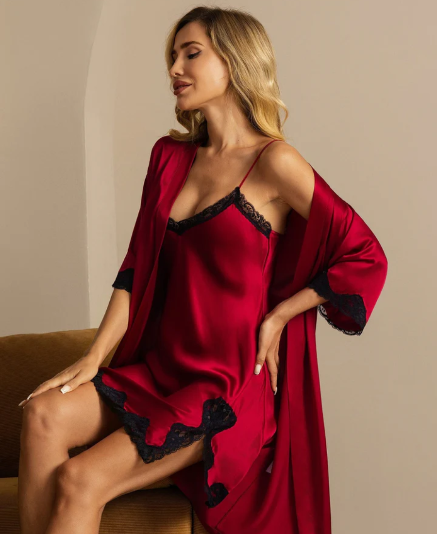 Pure Silk Spaghetti Strap V Neck Above the Knee Camisole Set