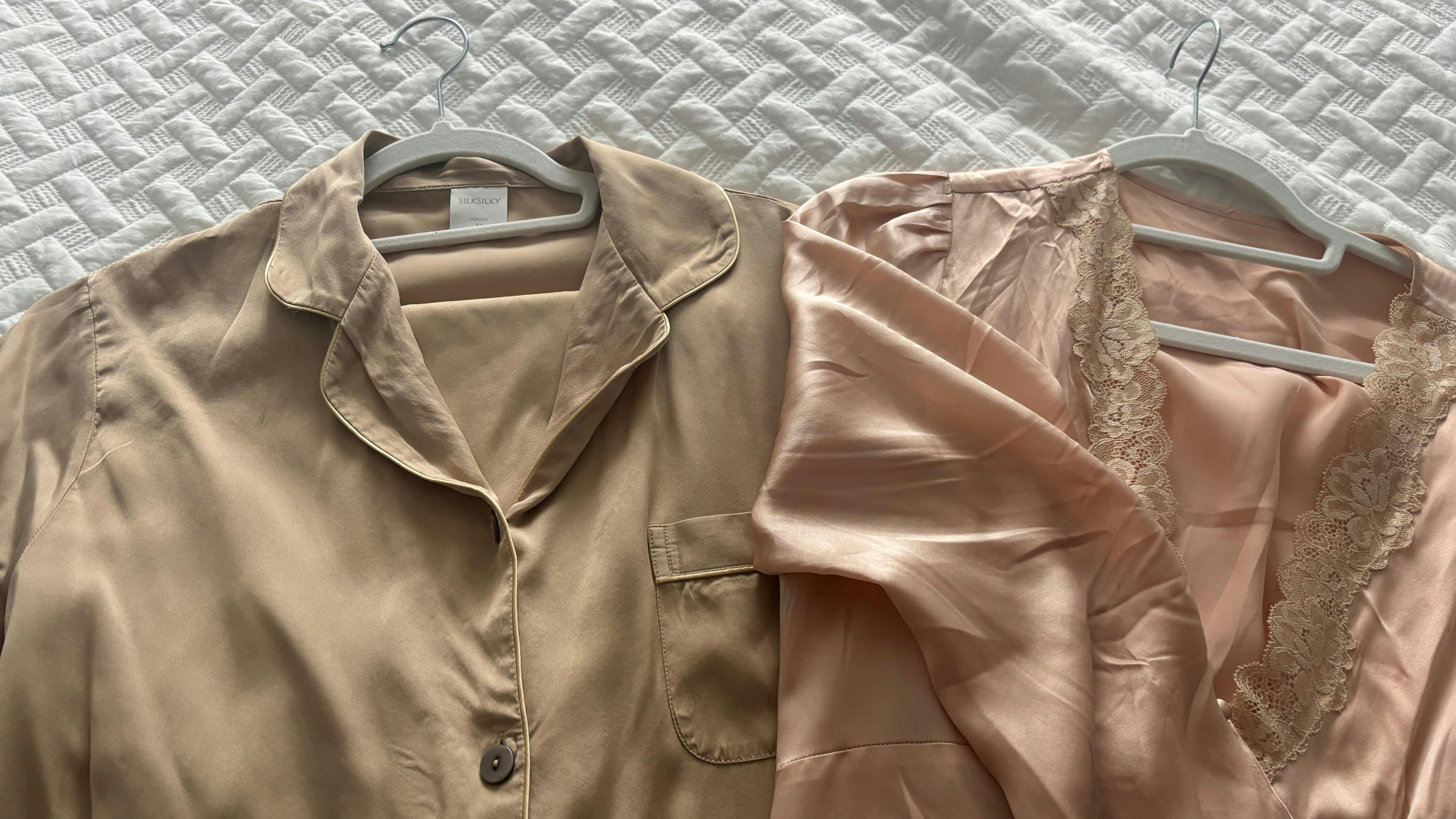 ¡Me encantan estos pijamas de seda! El material se siente tan suave y liso sobre la piel — increíblemente lujoso y ligero.