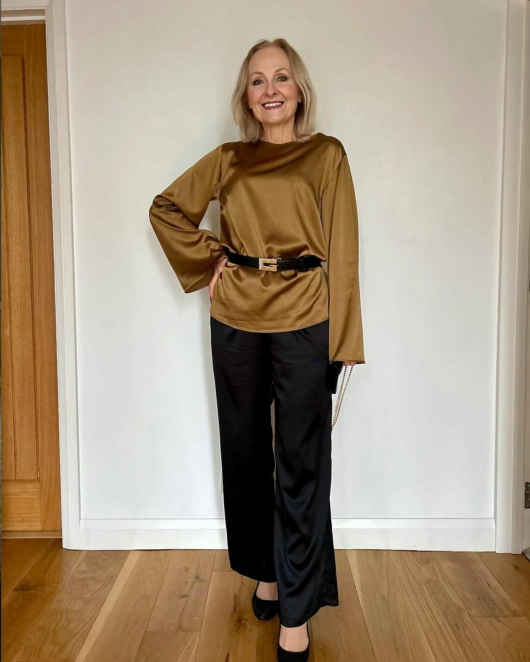 Such an elegant and comfortable dress. The silk drapes beautifully, making me feel confident and relaxed.