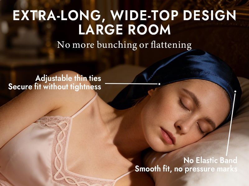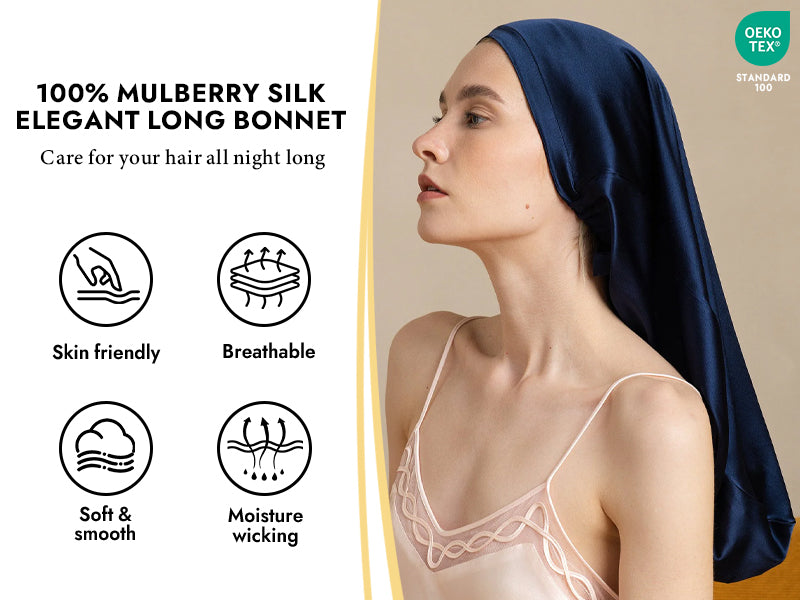 I’ve got straight but frizzy hair which goes down to my waist but goes crispy and dry at the ends every time I sleep on it. No matter how I do my hair for bed - in a plait, a pineapple bun, in heartless curl sets, in a satin scarf tied up, satin pillowcase — it comes out super frizzy with rough bent ends the next day. It also gets greasy quickly abd just looks meh even if I do a fresh blow out at night time ready for the morning. I also find these styles incredibly uncomfortable to sleep in. just bought one of these long hair bonnets and used it last night for the first time and OMG. My hair looks even more shiny and perfect than it did when I first blow dried it yesterday morning. It was comfortable to sleep in, much more so than wearing any of the other styles I’ve tried, as I didn’t need to do anything with my hair once it was inside the bonnet, it just stayed loose. My hair also seems less oily on day 2 than it usually does. I am so happy with my purchase and will never sleep without a silk bonnet like this one from now on.