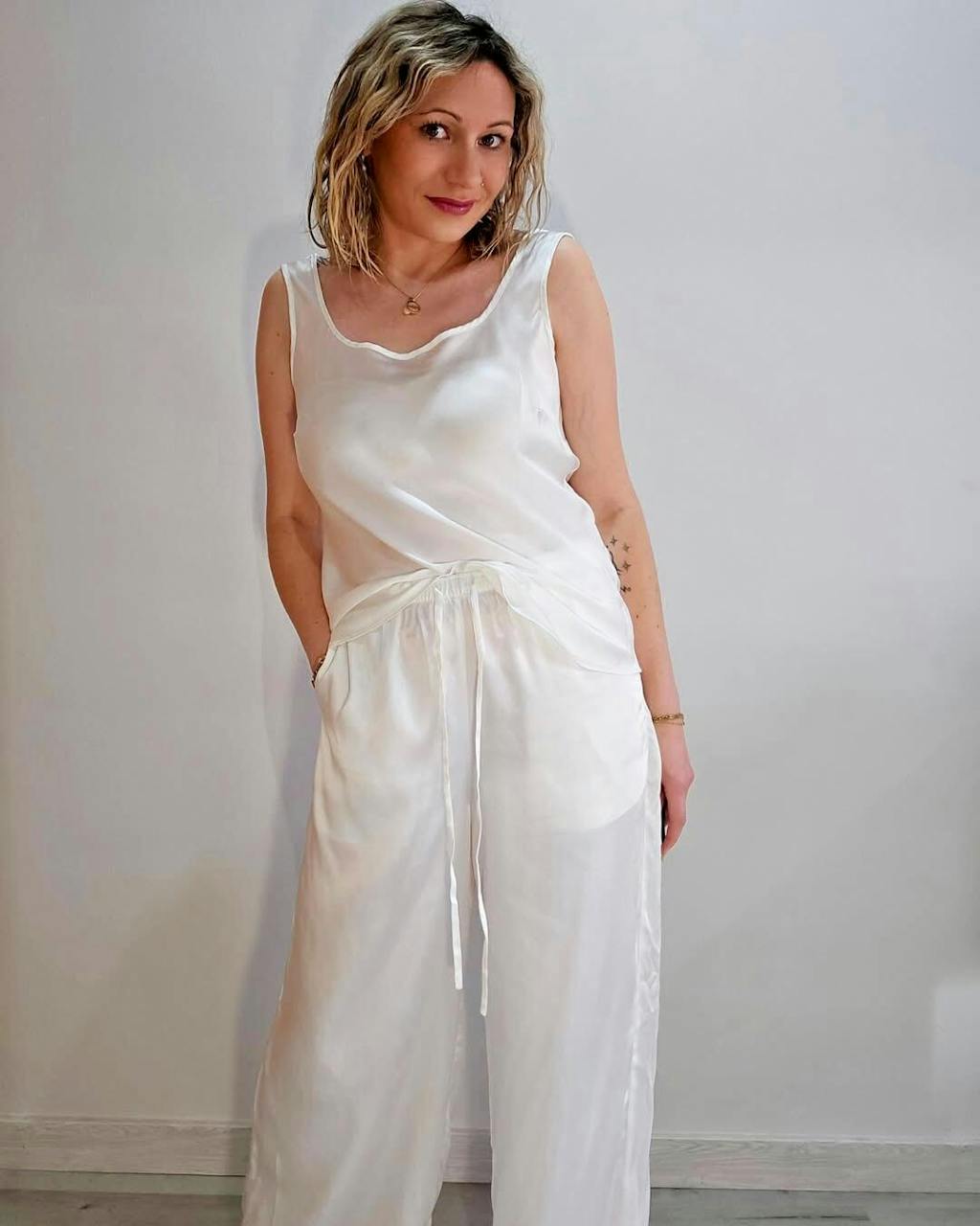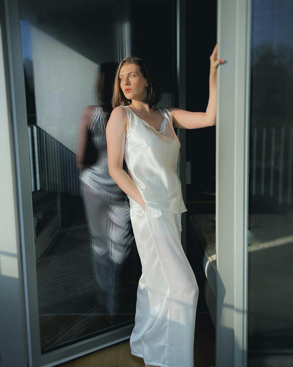 The white camisole set is incredibly soft and comfortable. It’s so feminine and perfect for lounging or as nightwear. Absolutely love it!