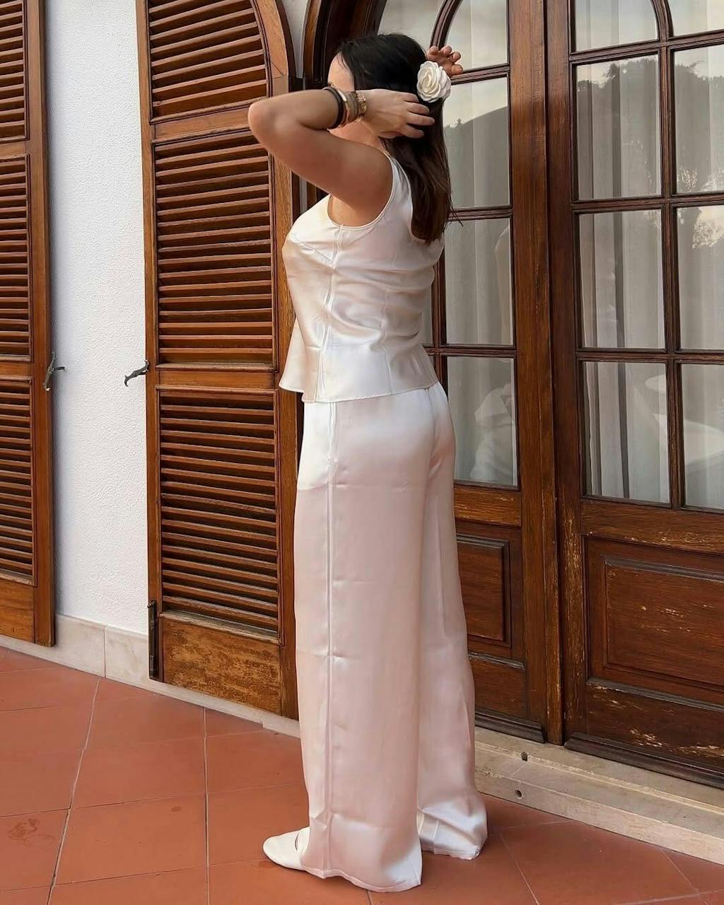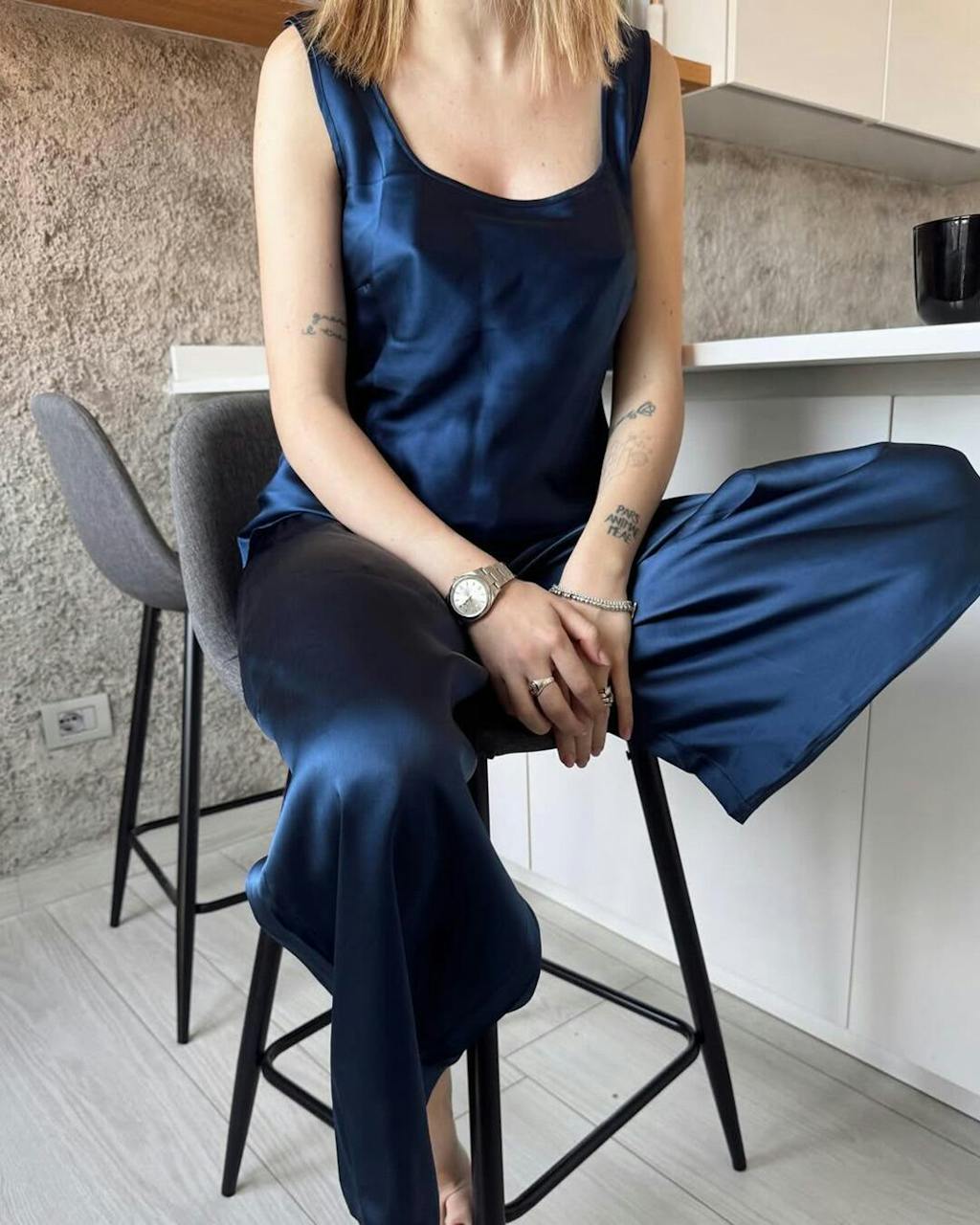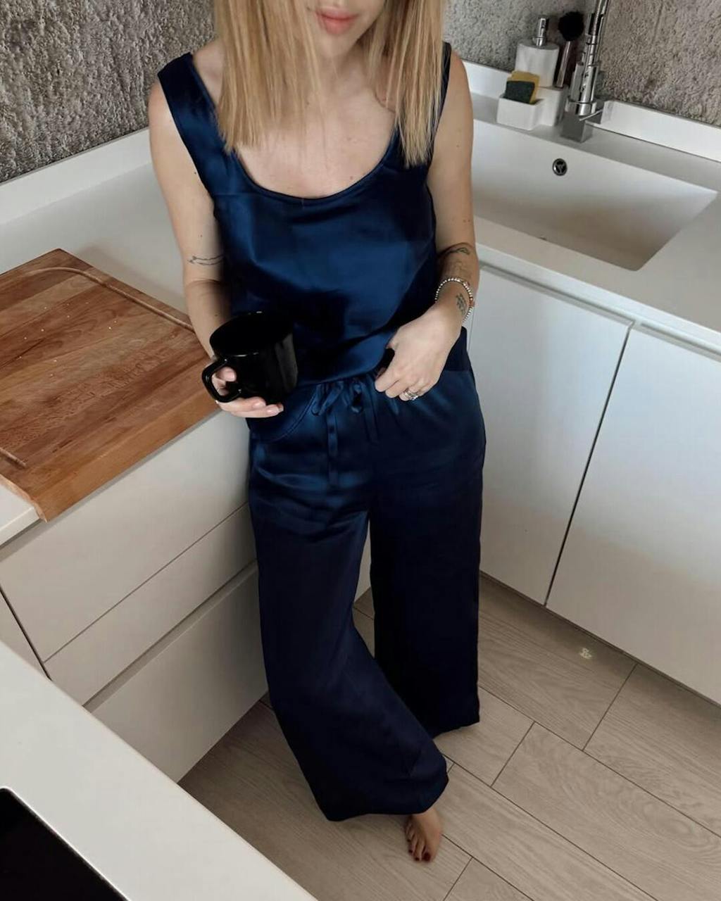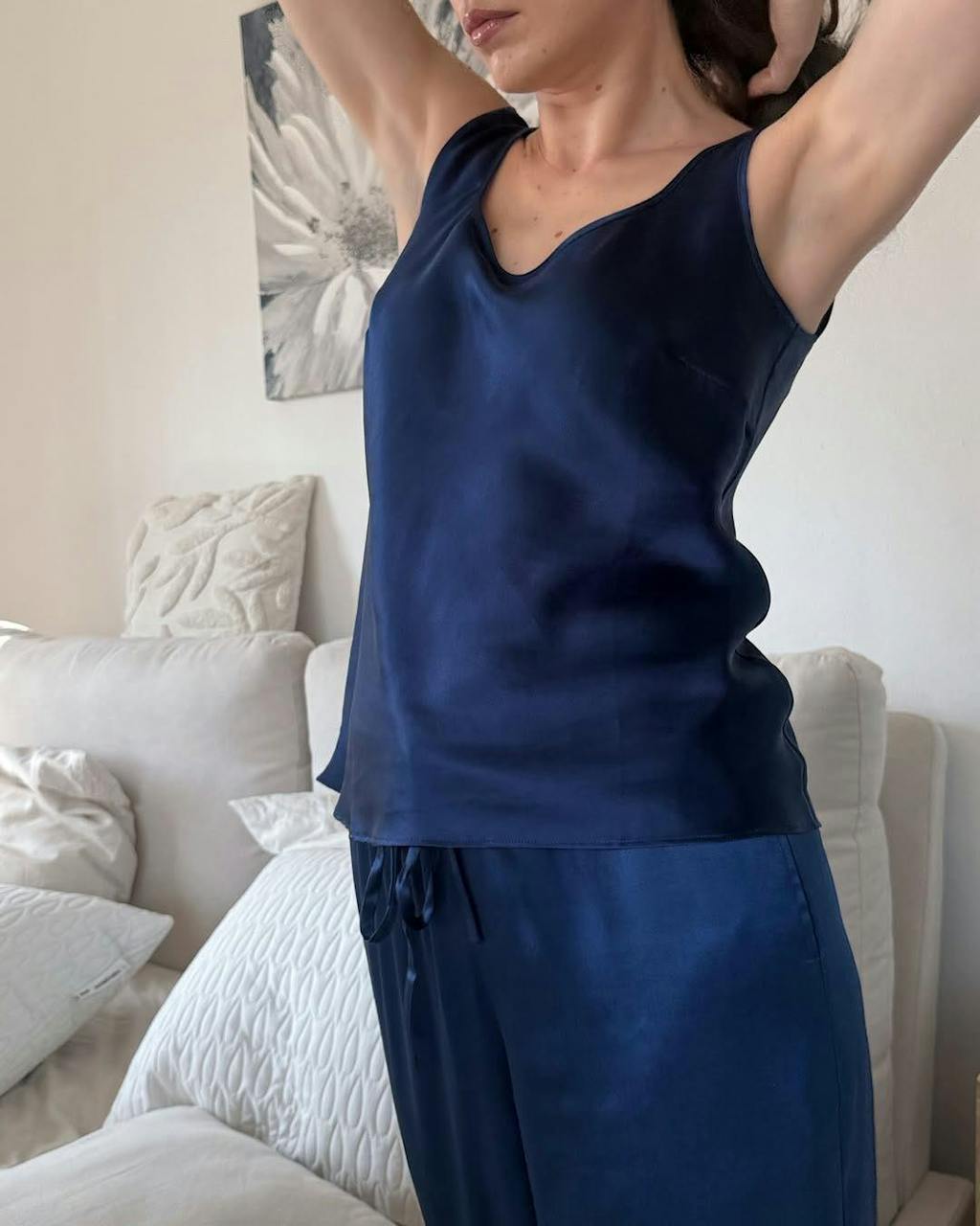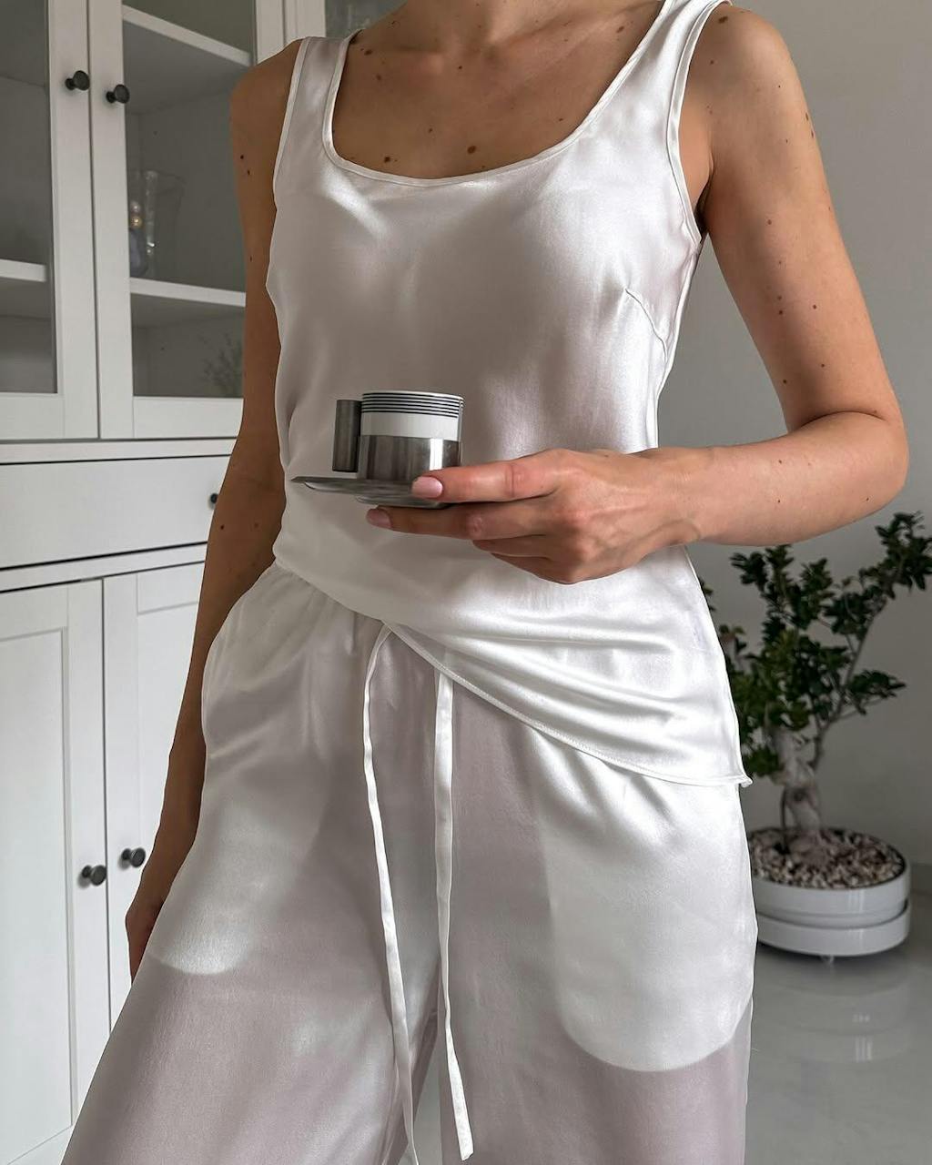 Un set di canotta così delicato e morbido! Seta liscia e una vestibilità perfetta, ideale per essere indossato sotto o come abbigliamento da lounge stiloso.