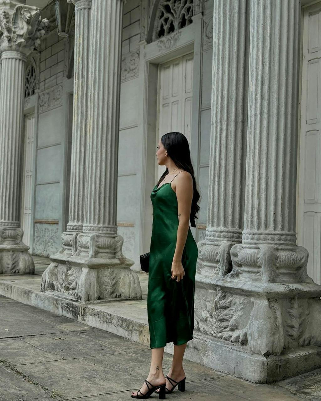 Such a classy and chic dress! The silk feels amazing, almost weightless, and it moves beautifully as I walk. It’s comfortable enough to wear all day and stylish enough to turn heads. The color is even better in person, and it has a bit of stretch, making it super comfortable.