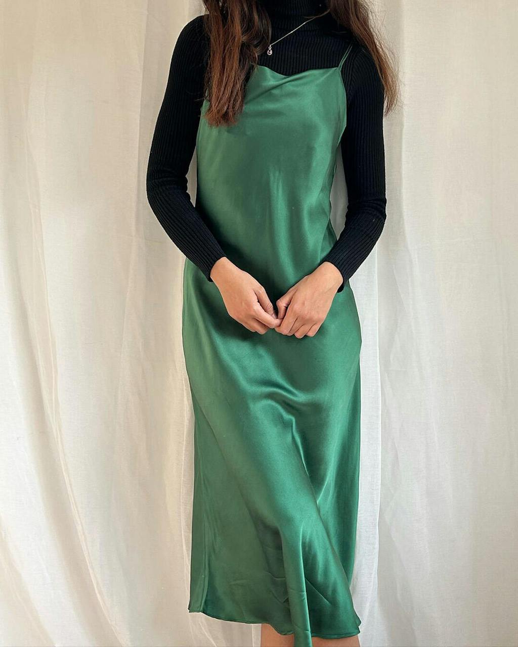 Timeless elegance made from pure silk. It is so soft and natural material, very high quality. I chose black color, but I would love to have these in other colors aswell, because this dress is perfect to combine in different occasions. Love the fact that it is also quite long. Highly recommend!