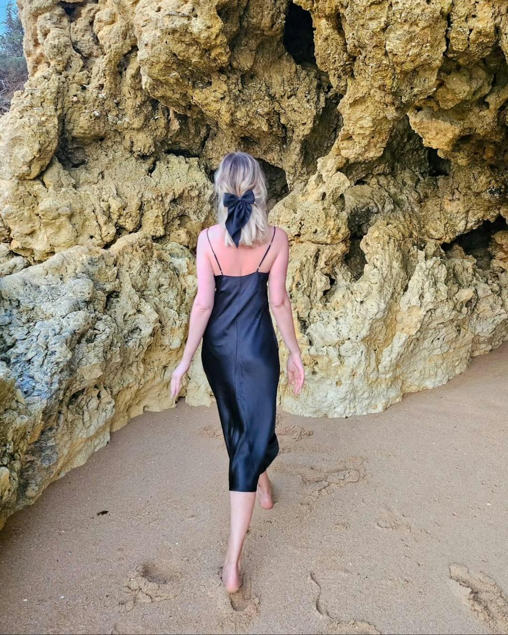 This black dress is a total showstopper! It’s perfect for a night out at the bar. The silk feels luxurious, and the cut is so flattering. I felt so confident and chic wearing it—definitely a must-have for any special night!