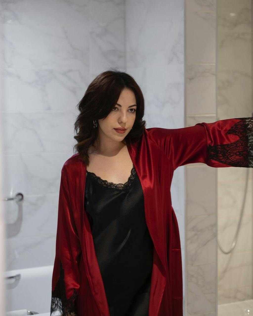 This robe is beautiful!Easy to dress it up or wear it casually. The lace detailing is also very beautiful.