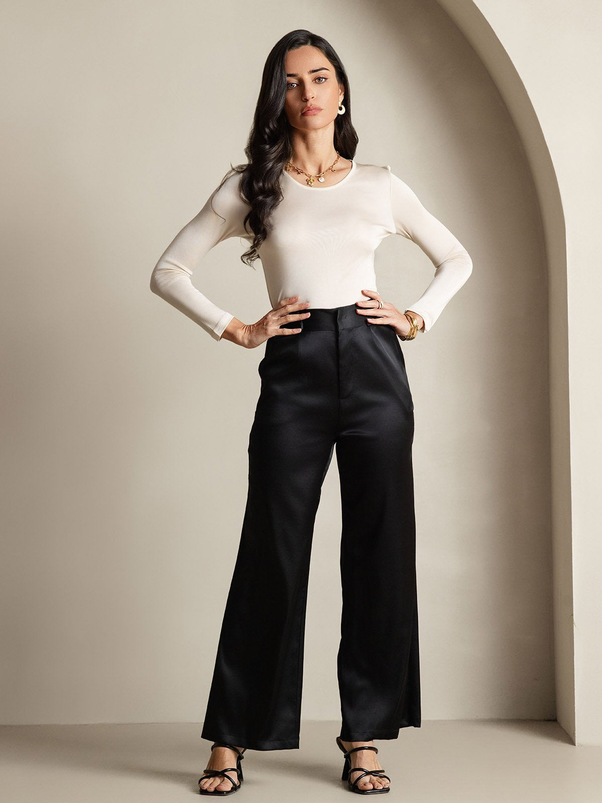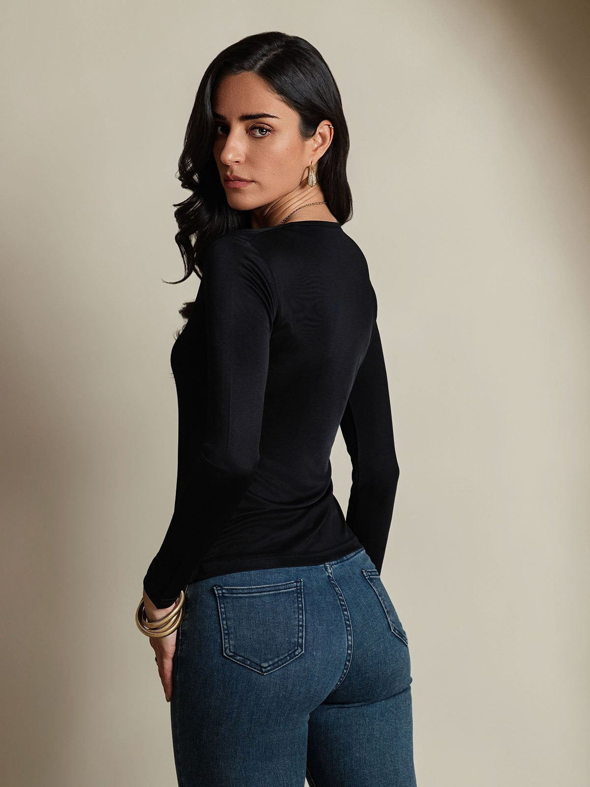 Silk Blend Round Neck Long-Sleeved T-Shirt